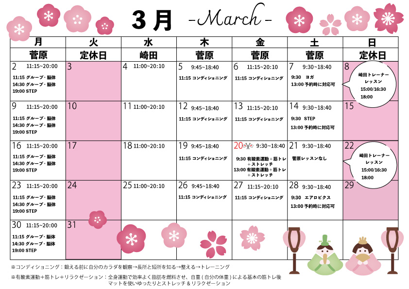 3月は、7日と21日が崎田トレーナーのレッスンとなっています。
